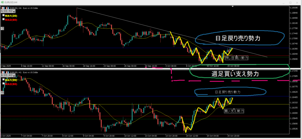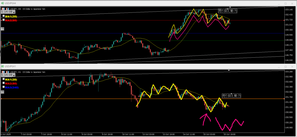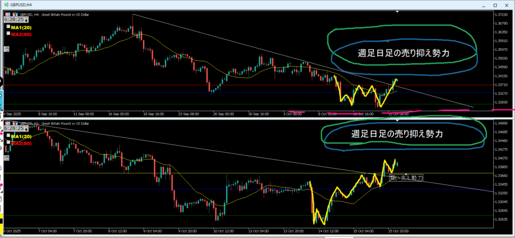 黄色のダウカウントは1hのダウを見ている様にも思える。