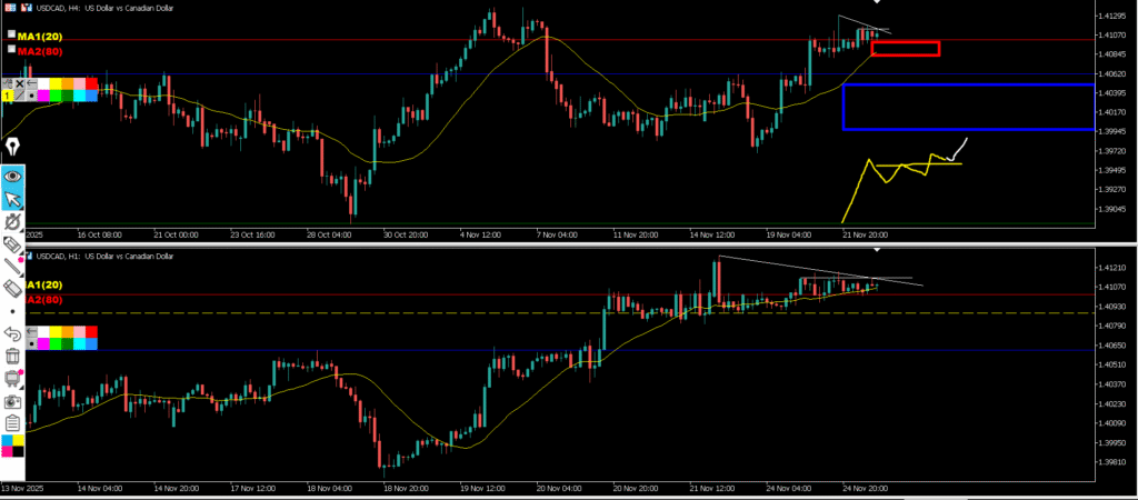 4h1h上なので欧州前後であれば攻防ライン抜けエントリーを考えたいがドルカナダ欧州で動くか?