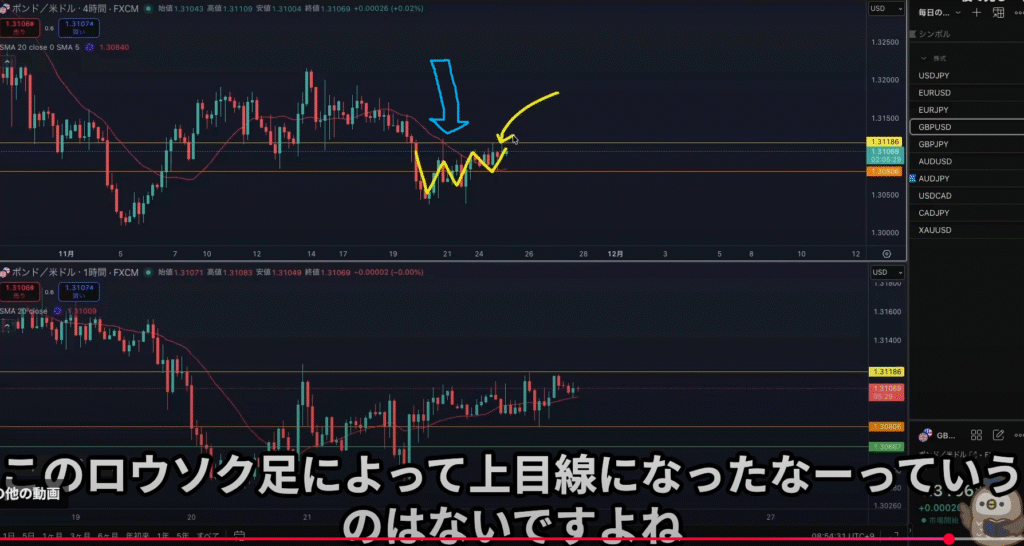 ←水平線にレジサポする事によってここじゃないの?って確認になる。