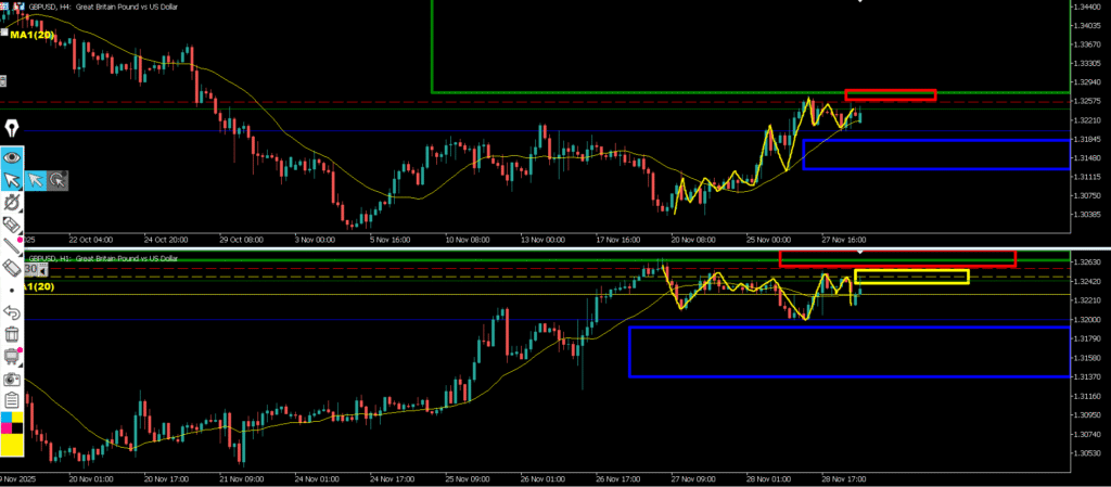 4h水平線を少し抜けているが止まっている1hも上なので攻防ライン抜けエントリーを考える場面、現在8:25にエントリーポイントは来ていたが波的にかなり早すぎるのでスルー、波的には早くても欧州でNYが狙うべき波感だと感じるので欧州以降で考えていきたい。
