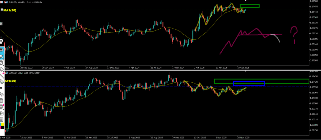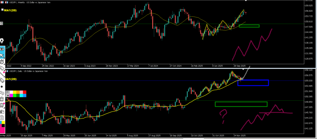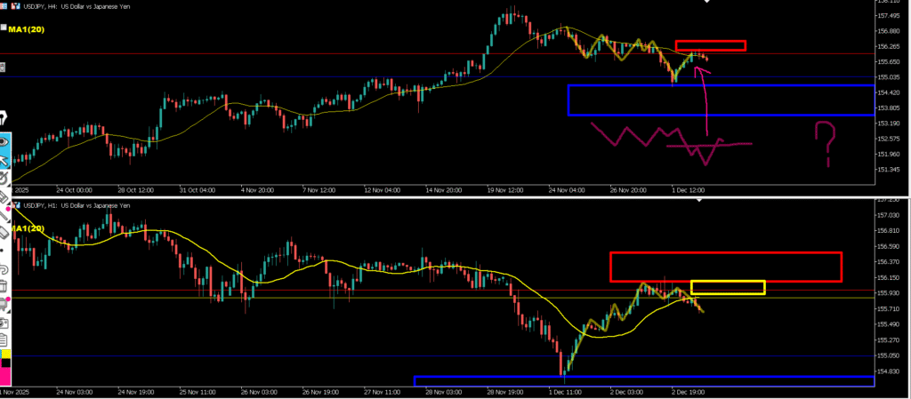 予想になるが週足の戻り売りで日足がここからヨコヨコの高値切り下げて下になった所から4hトレンド発生を待ってエントリーを考えていきたい。
