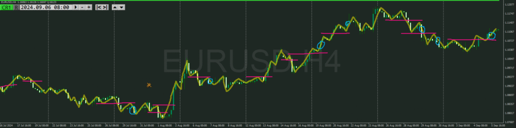 ・点線を抜けると上目線でトレンド転換シグナルになる