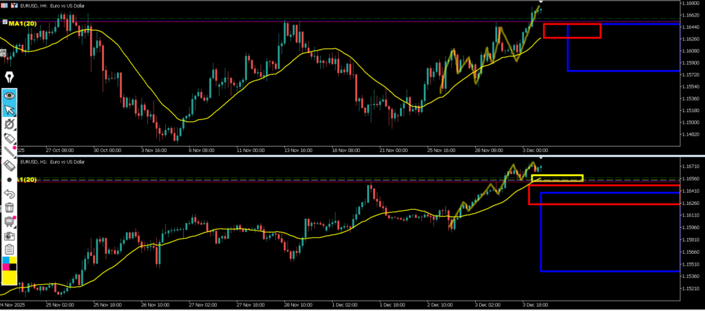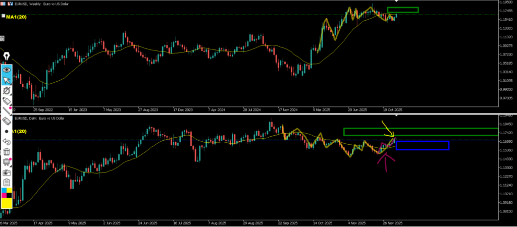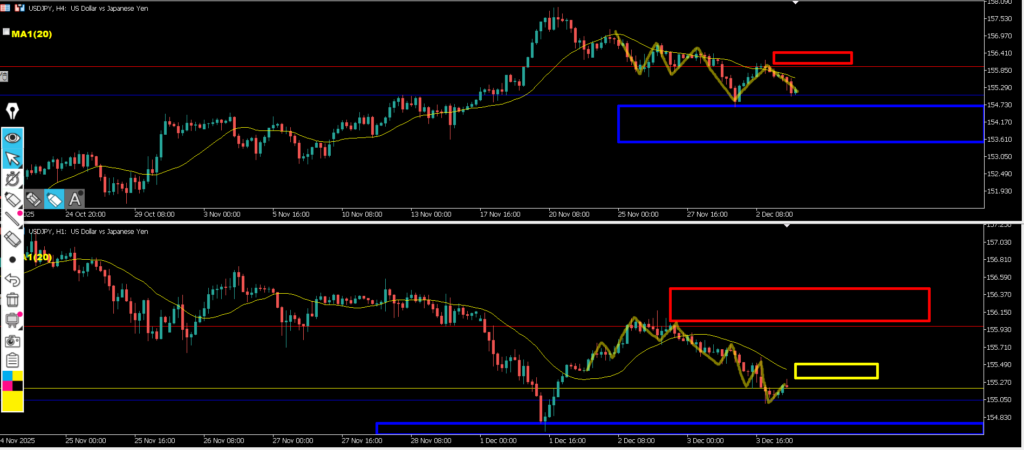 4hほぼ全戻しから少し待って全戻しの上昇に対する押し目買いにならず1hトレンド発生の戻り売りの場面、4h1hMA共に抑えてきているの15mネックライン抜けエントリーを考えたい、ただエントリーした場合日足のMAがすぐ下にあるので支えられての上昇が怖い。