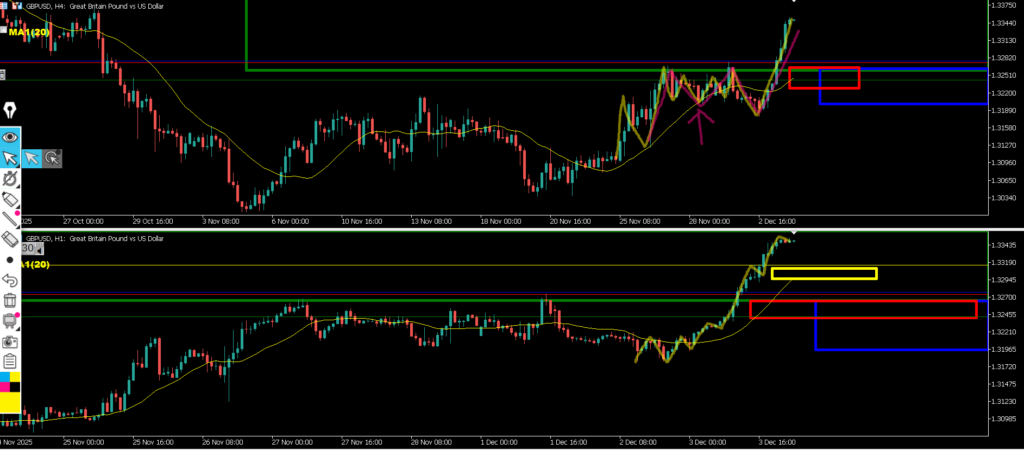 日足上昇の波の途中なので4h押してきたら押し目買いを狙っていきたいが、今日の事にはなりそうもなく早くても明日なので当分静観