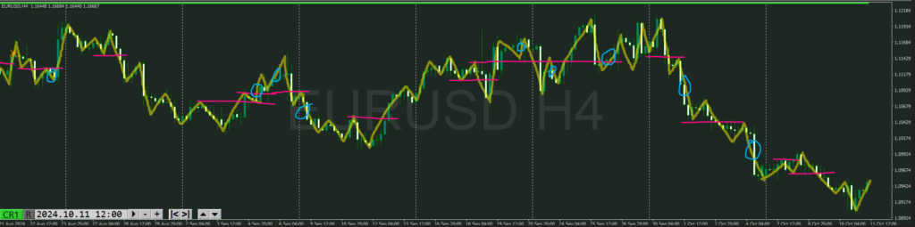 ・点線を抜けると下目線でトレンド転換シグナルになる