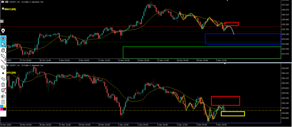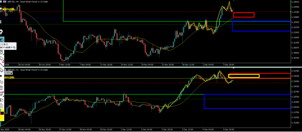 日足調整のヨコヨコで4h戻り売りの場面日足MAが支えてきているのでスルー
