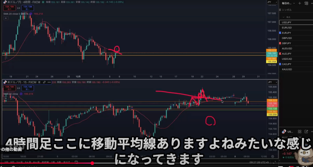 ・上位足の勢力が分かると“なんで負けたか”がわかる、周足・日足・4時間がどこにいるかを把握すると迷いが消える、抜けたのに返される理由がMAや勢力の位置で理解できる、言語化の抜けが減りチャートの見え方が安定する