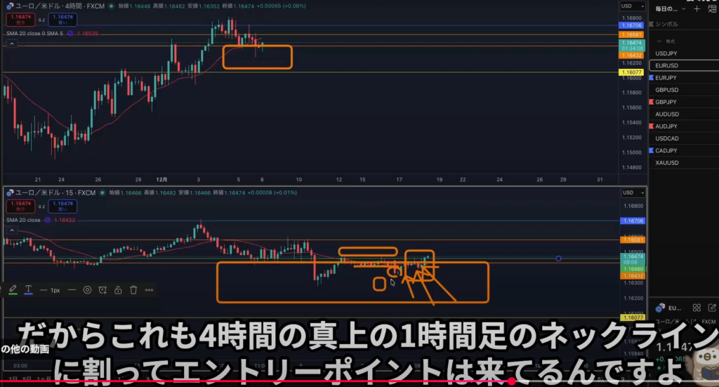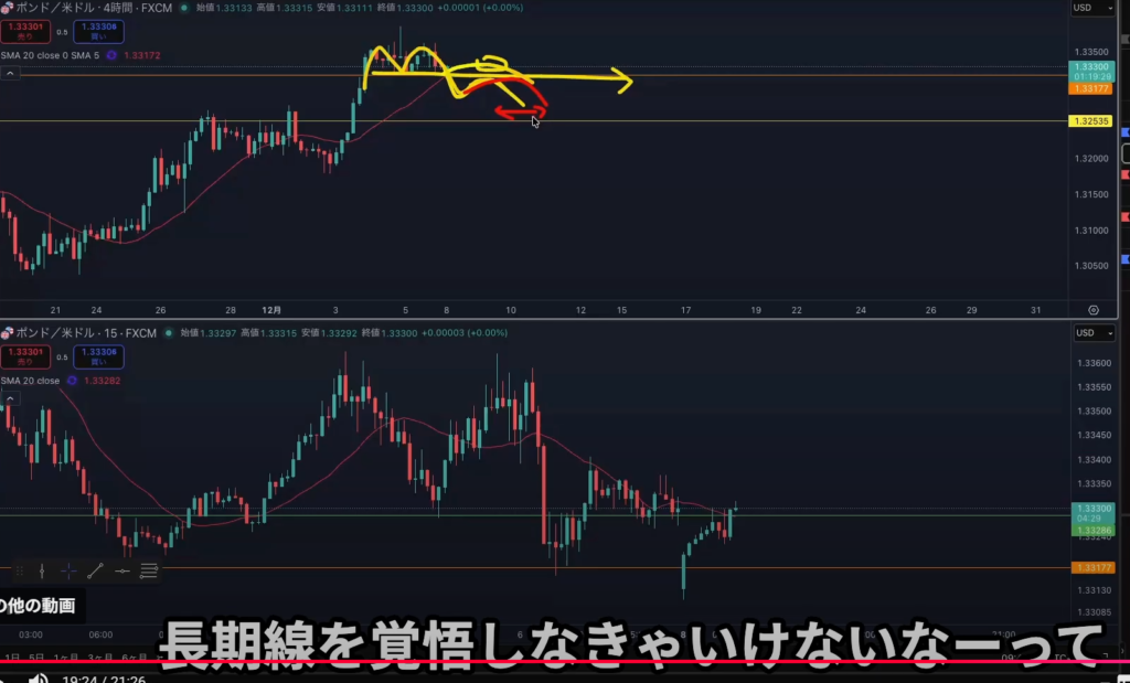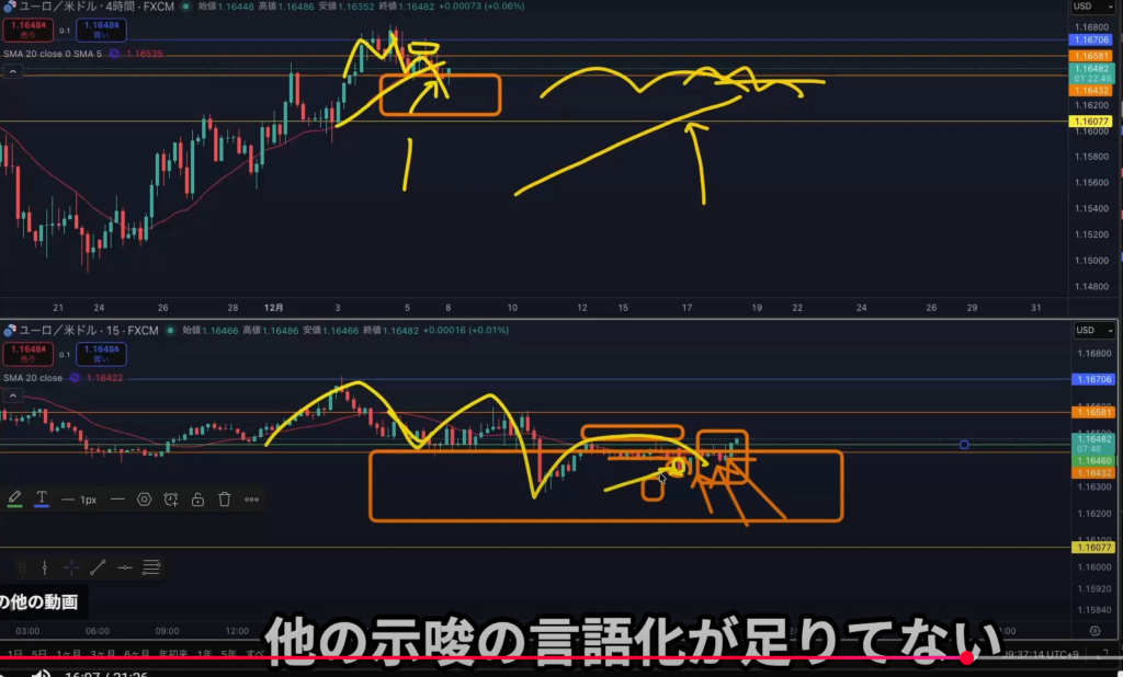 ←4h二番で1h戻り売りで騙される場合は言語化は合っているが4hMAがまだ上向きなど他の示唆の言語化が足りていないから、形だけで入ってしまう原因。