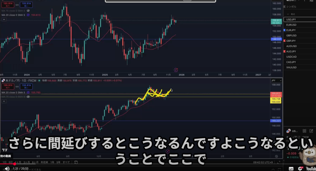 養成講座では4hでダウカウントしていたところが1hのダウが見えているだけと言われていたので、そもそも4h上目線の押し目買いではなかったみたいだ