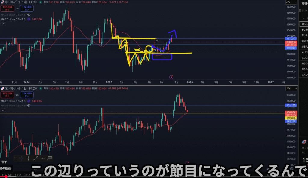 セオリー的には週足が上位足で強いので上昇して行く可能性の方が大きい!