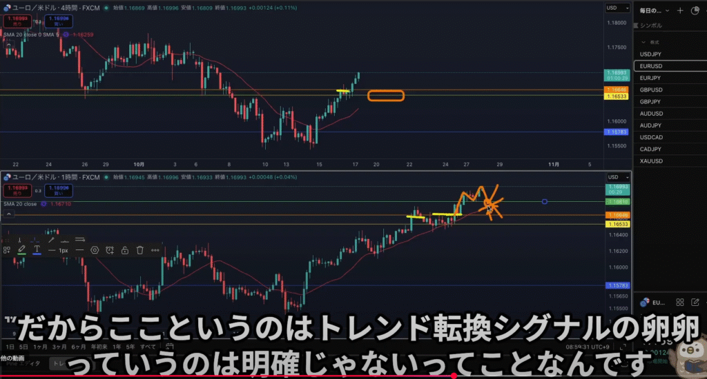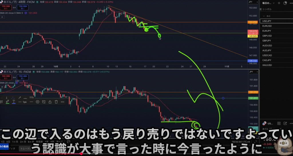0:20現在4hは綺麗に水平線で止められたが戦争状態になりやすいエリアなので手を出してはいけないところ。