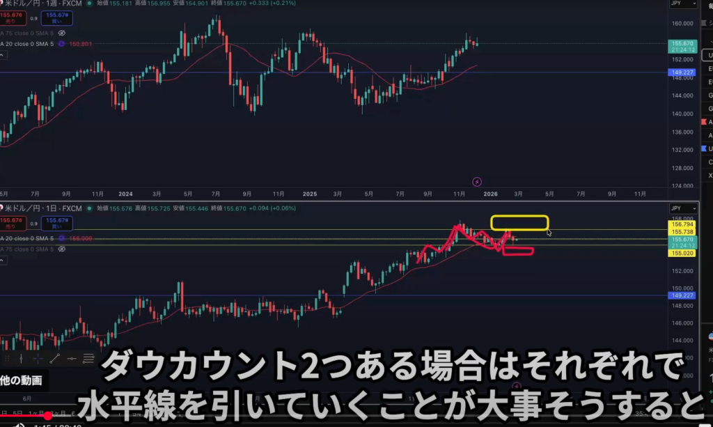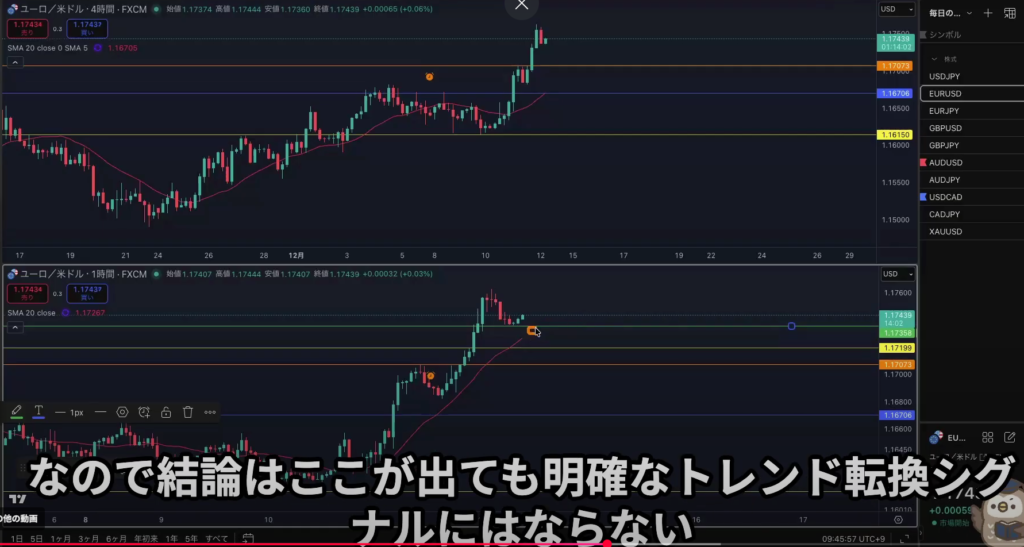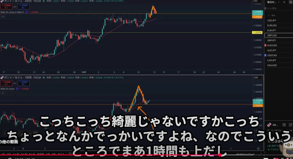 4hのダウが1hで見えていて1hがいまいち分からない時は気を付ける。
