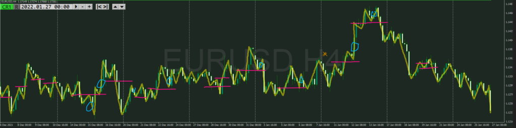 ・点線を抜けると上目線でトレンド転換シグナルになる