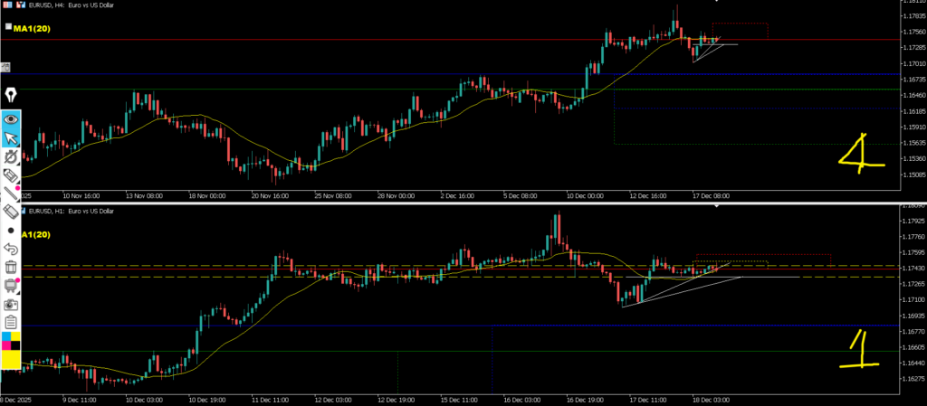 4h戻り過ぎではないと判断して戻り売りを考えていきたいが波的に今の4hローソク足で下降する場合は早い足と感じるのでローソク足確定後の次のローソク足から狙って行きたい、1hのダウカウントは微妙だが上目線と見てトレンド転換でエントリーを考えたい、ただ1hMAを必ず下抜けてから、欧州前後~に感じる。