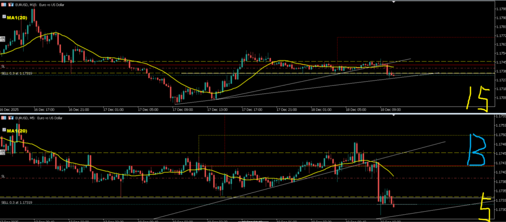 4hMAも抑えてきて1hMAも抜けてトレンド転換したので5mの安値抜けで5mダウ上にSL置いて入ろうと思う