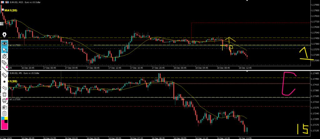 15m前回安値まで下降したので③を①②と同じ15mダウに移動