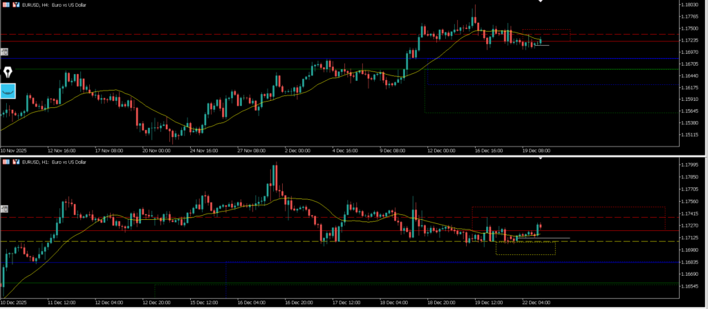 緑が週足 青が日足 赤が4h 黄色が1h