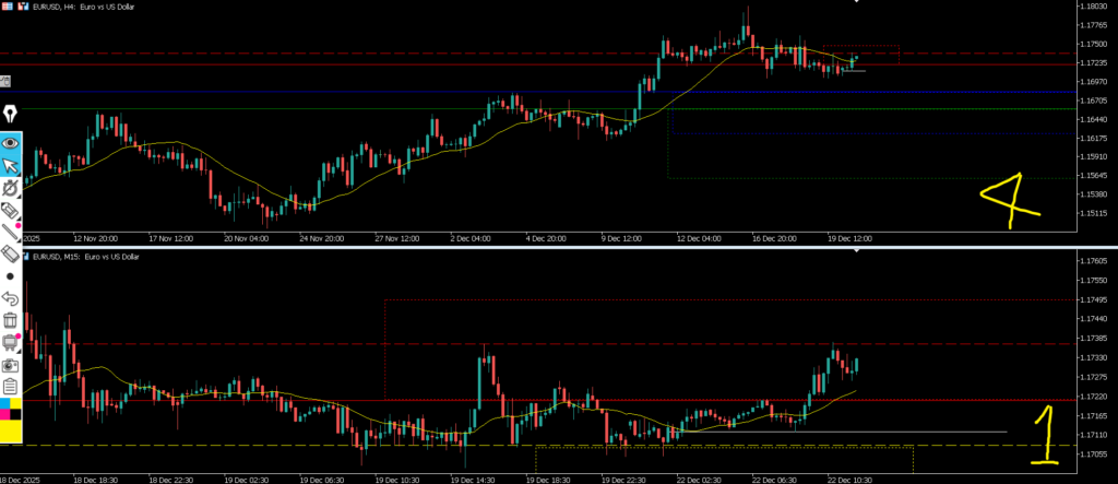 結果的に環境認識で見ていた通り4h押し過ぎからの1hトレンド発生を待って15mネックライン抜けエントリーが見事に来たがユーロドルを見ていて気づかなかった、実際見ていたら環境認識で無理する場面ではないとしていたのでエントリーが出来ていたかは分からない。