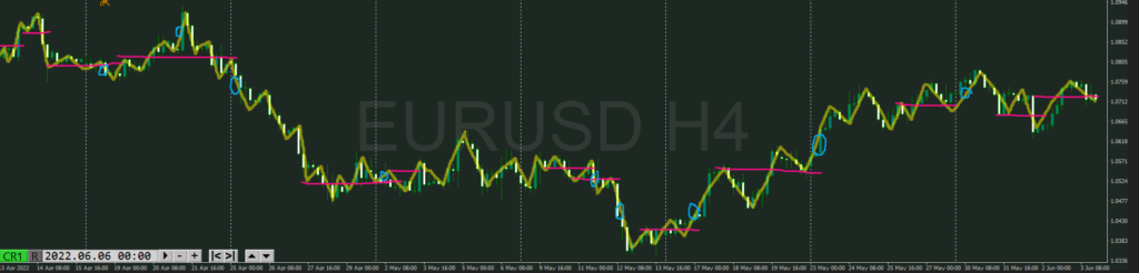・点線を抜けると上目線でトレンド転換シグナルになる