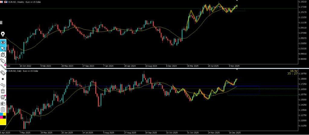 緑が週足 青が日足 赤が4h 黄色が1h