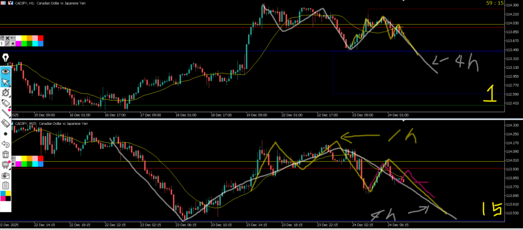 4h戻し過ぎから1hトレンド発生を待って15mネックライン抜けエントリーを考えていきたい