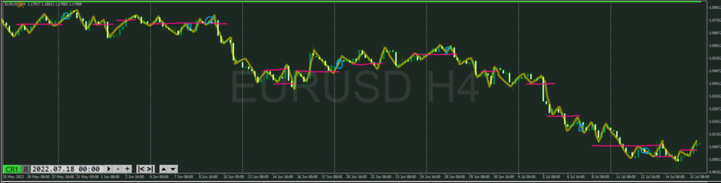 ・点線を抜けると上目線でトレンド転換シグナルになる