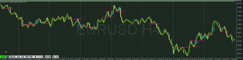 ・点線を抜けると上目線でトレンド転換シグナルになる