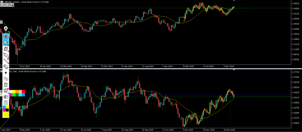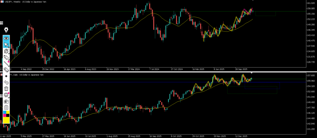 ・ピンクエリアに何かいるのは恐らく日足のMAが支えてきている