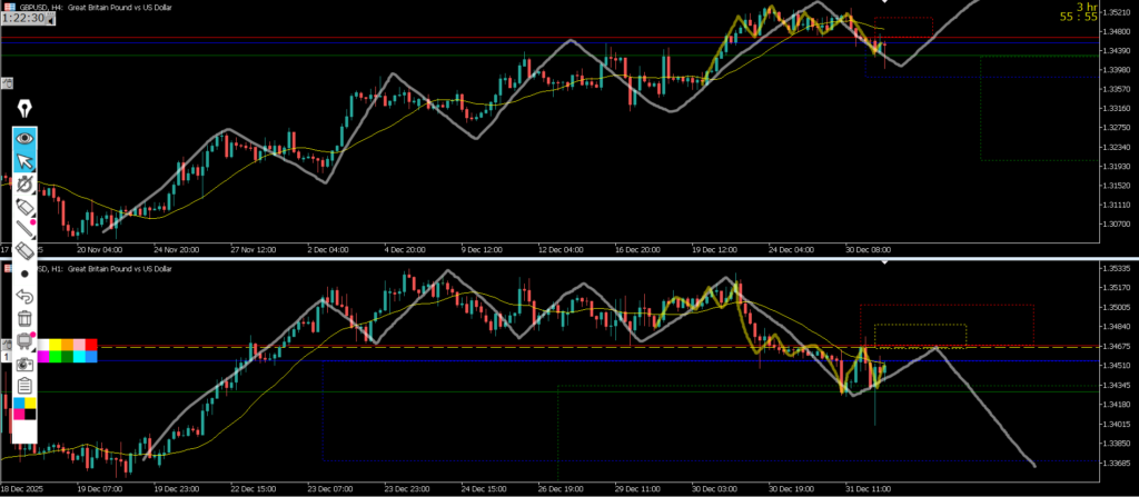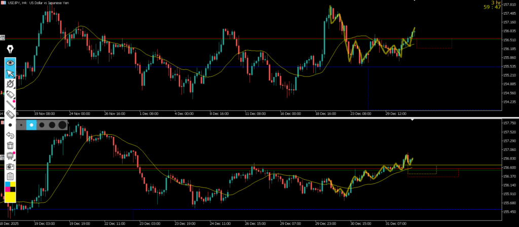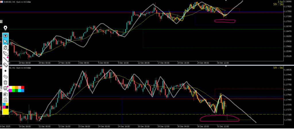 日足のMAは支えにきて4hMAは抑えに来ているので1hでは全戻しになって環境認識通り1hでゴチャゴチャになって、窓開けなどもあり良く分からない状況になっている
