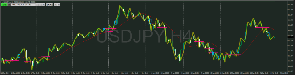 ・点線を抜けると上目線でトレンド転換シグナルになる
