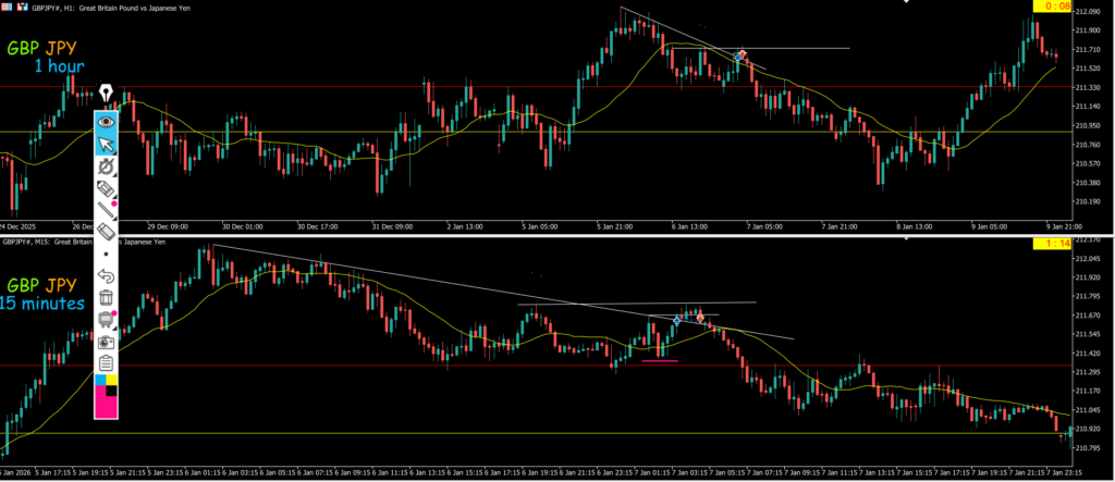 15mは反転してMAに支えられているので1hMA抜けで入ろう