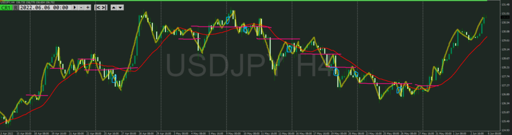 ・点線を抜けると上目線でトレンド転換シグナルになる