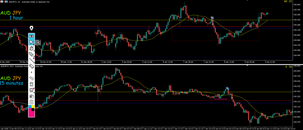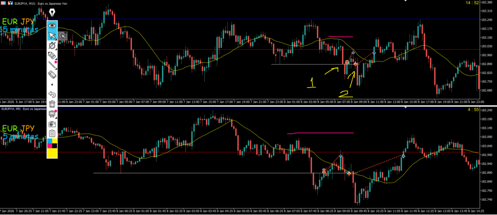 ・週足がピンクのダウカウントで見られていた場合日足の二番で存在確認が出来たところ