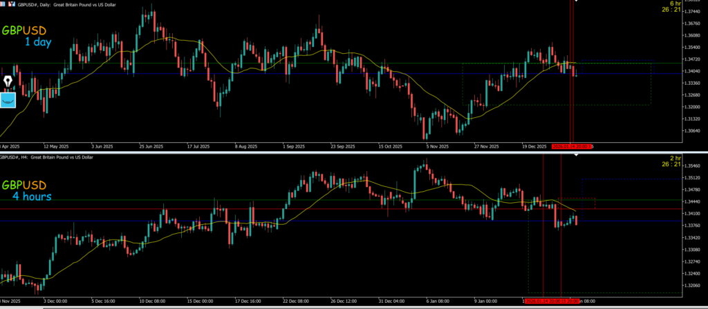 4hは戻り売りの波が前回安値の日足のサポートラインで止められている状況なので4h明確な高安抜けまでは静観する