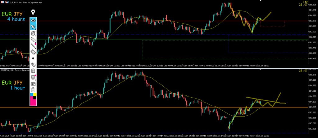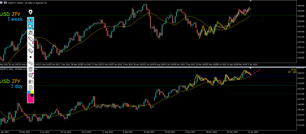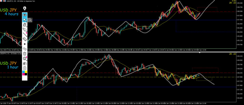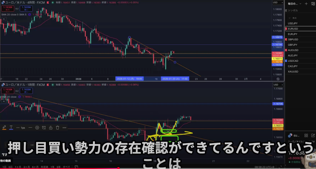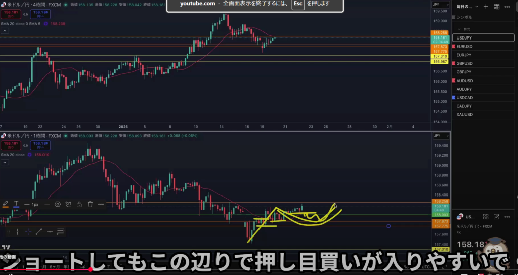 日足はヨコヨコ中でMAが抑えてきている4hは戻し過ぎでMAが支えて来ているので4hエントリーは戻し過ぎのセオリーになる