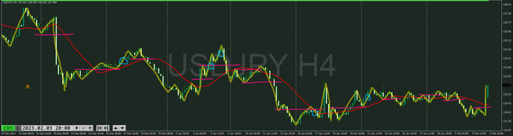 ・点線を抜けると上目線でトレンド転換シグナルになる