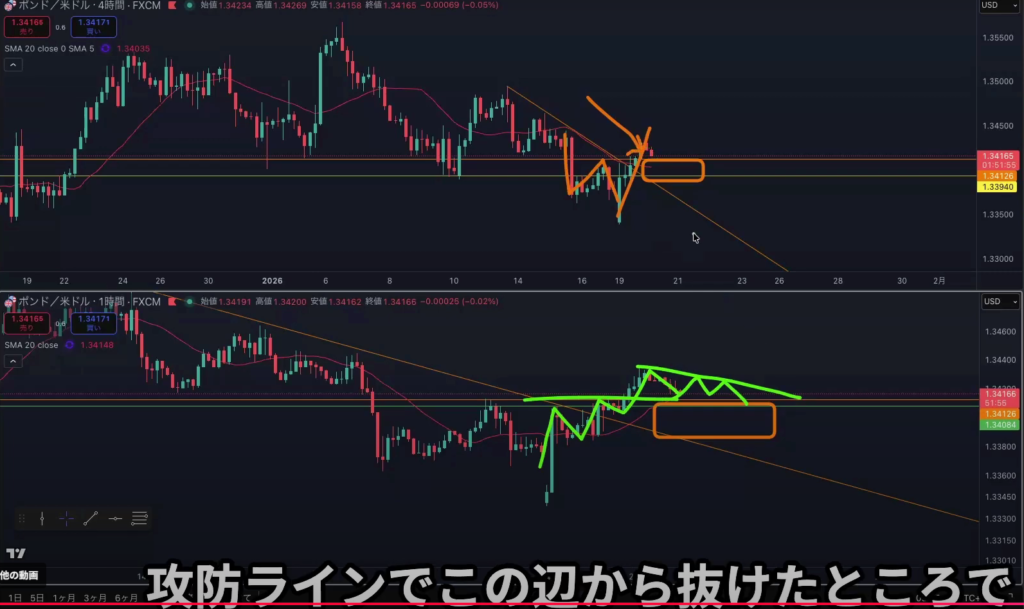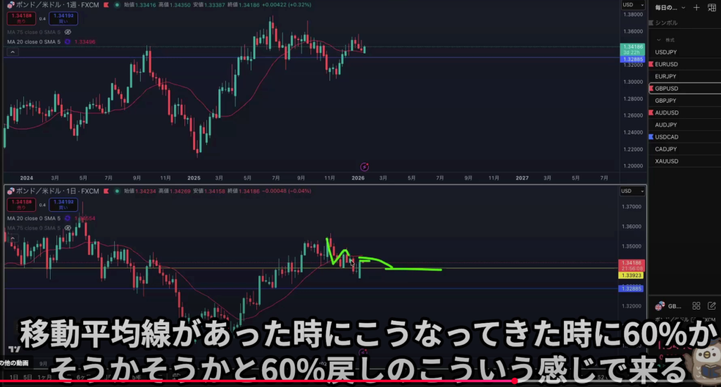 ・移動平均線やフィボで可能性を残す