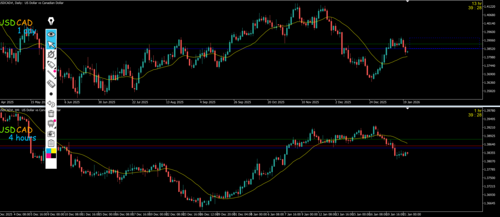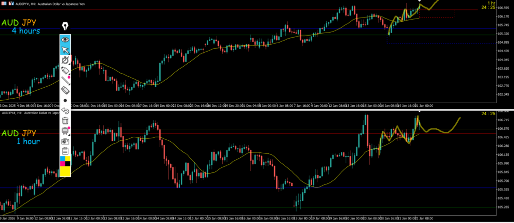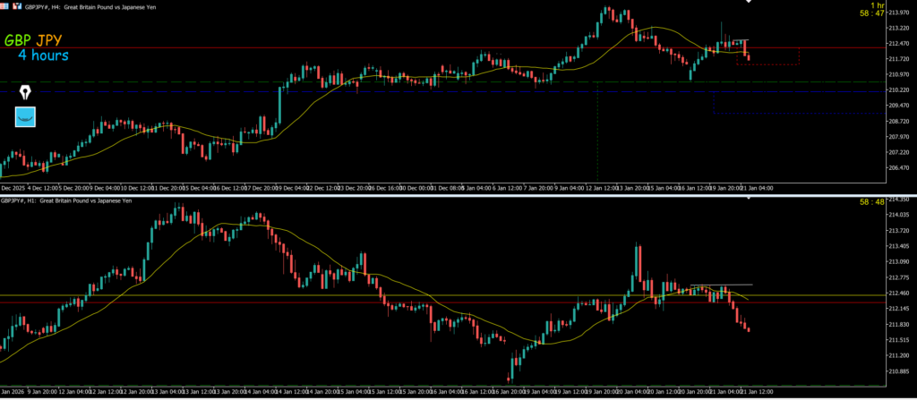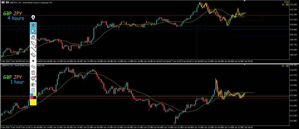 4h対1hは1hMAに抑えられて4hの押し目買い入らんのんか~~いで大陰線が出て4h下になったので終わり