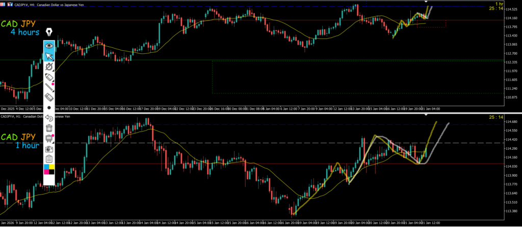 4h水平線で1hが綺麗に止まっている1hMA抜け後反転でのエントリーを考えていきたい、ただ日足のMAが抑えてきているのは要注意波的にはいつ出てもおかしくない