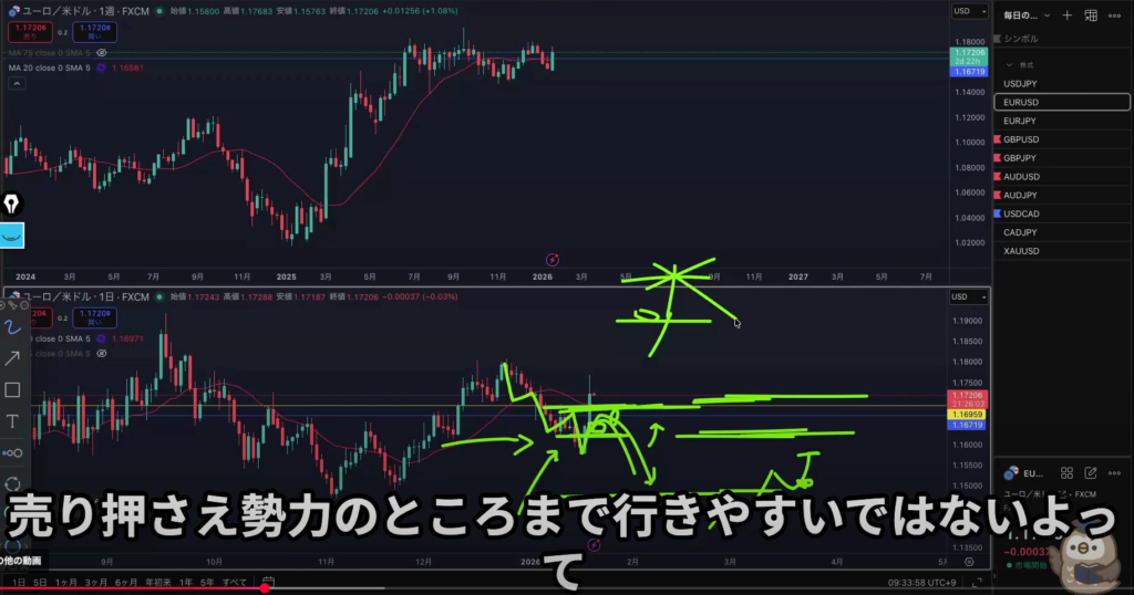 今まで何度か大口の話しは聞いた事はあったが凄い分かりやすくて理解出来た、これは週末反省会で記載している自分の課題の近視眼的にならず相場を客観的に大きく見るがまさにこの事なんじゃないかなと思った!