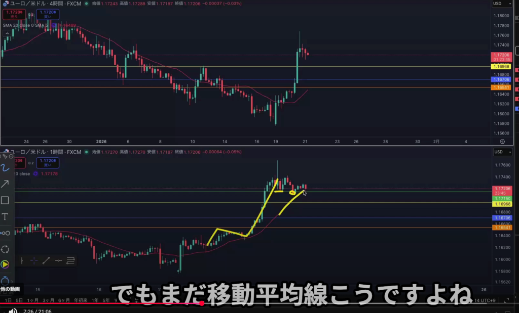 水平線を抜けてきて4hMAに支えられている状況