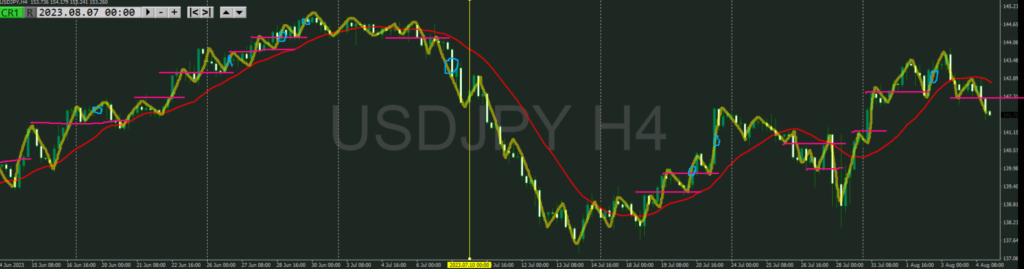 ・点線を抜けると下目線でトレンド転換シグナルになる