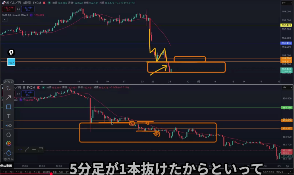 ・同じ価格で再エントリーできそうに見えても、上位足のトレンドが崩れている場合がある。