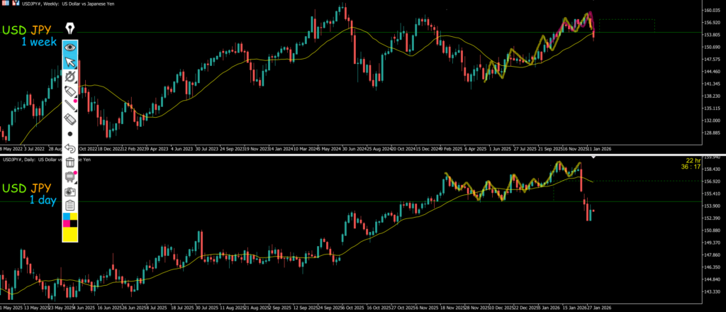 ・まだローソク足が確定していながMAも抜けているので一応方向は下