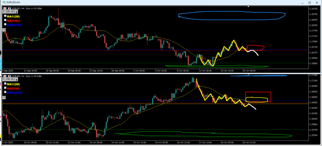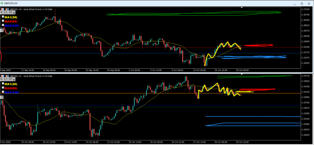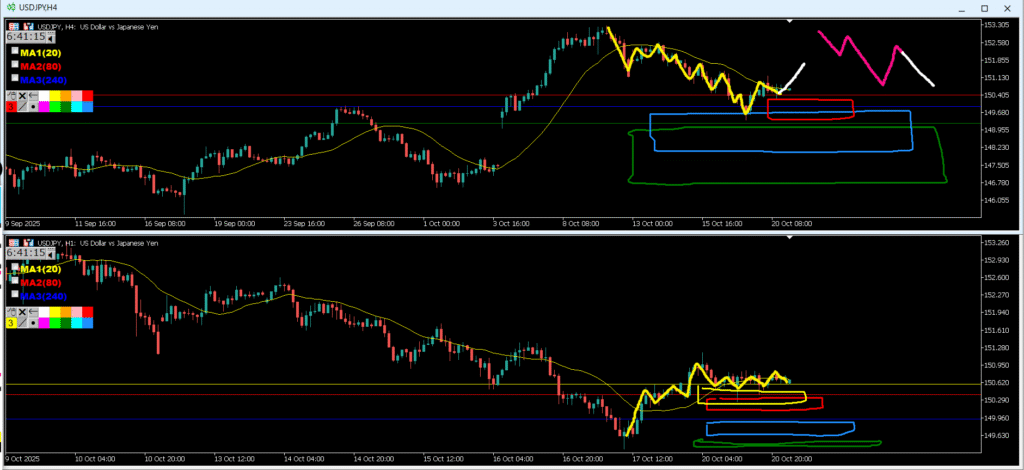 ・日足の押し目買いエリアで日足の時間経過を待っている状態なので4hヨコヨコになりやすい。