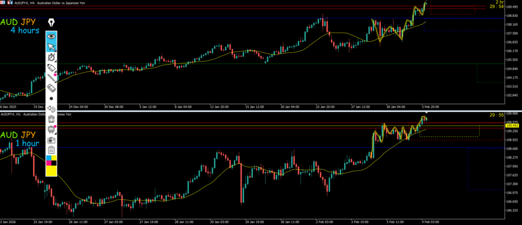 4h押し目買いの上昇の波の途中なので明確に高値を越えてからの押しを待ちたいので静観する