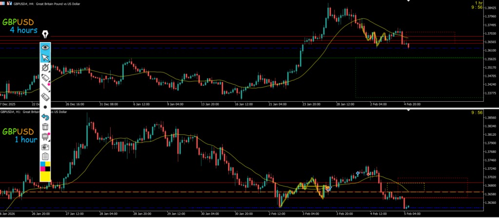 4h戻り売りの間延びした波と判断1hも下目線なので攻防ライン抜けでエントリーを考えていきたい、4hもう1波出るように感じる