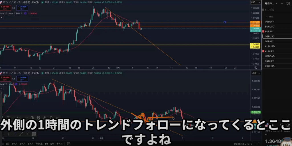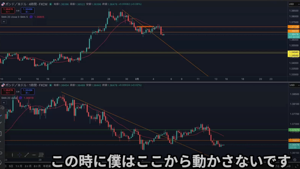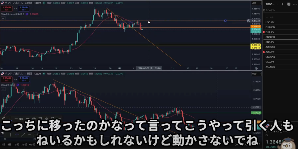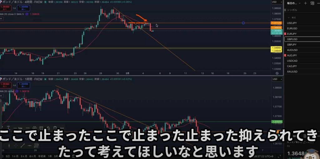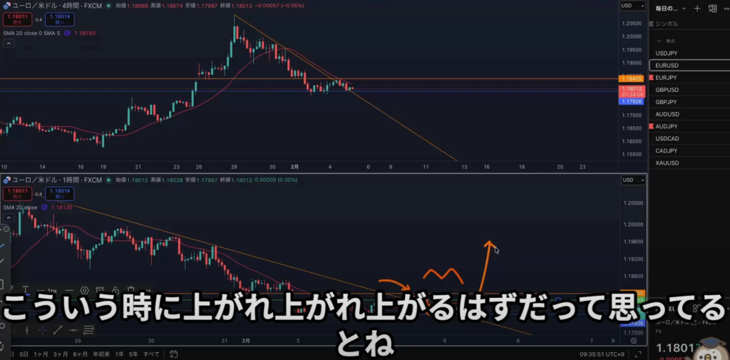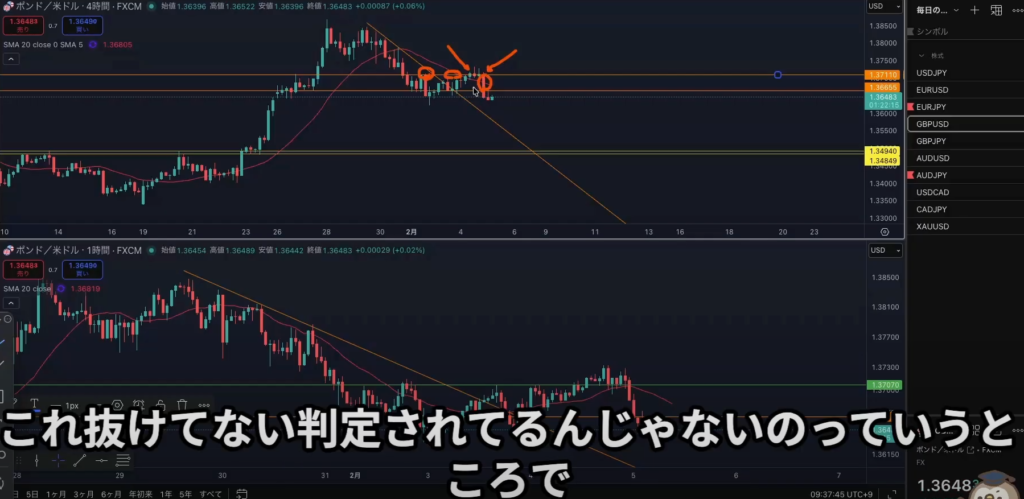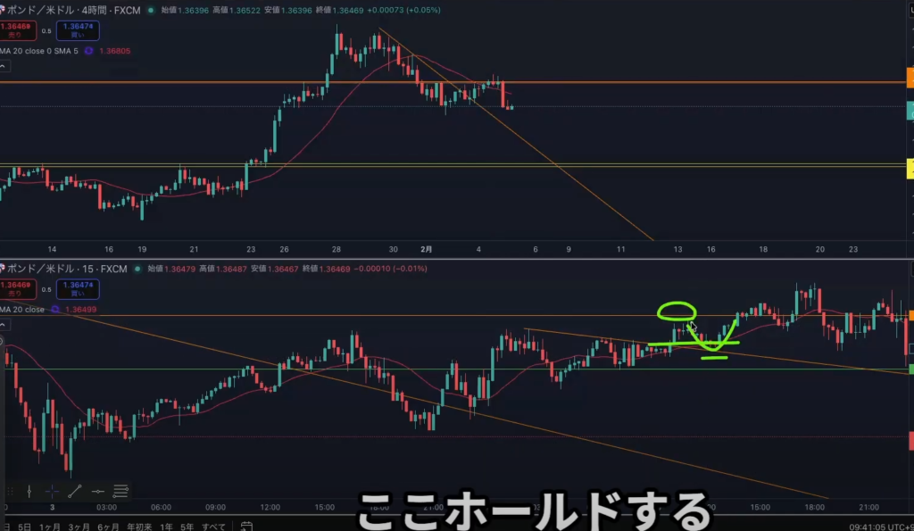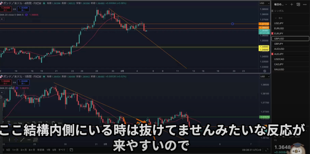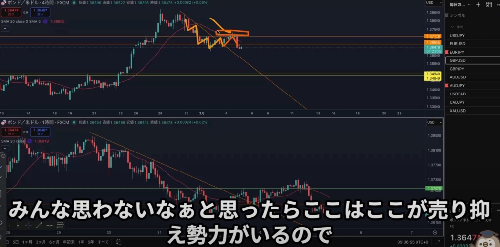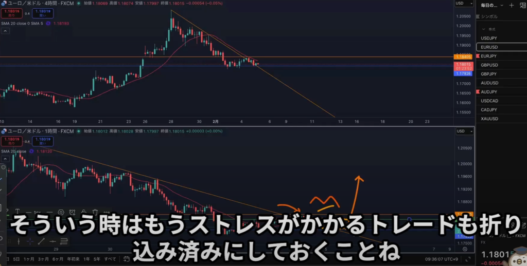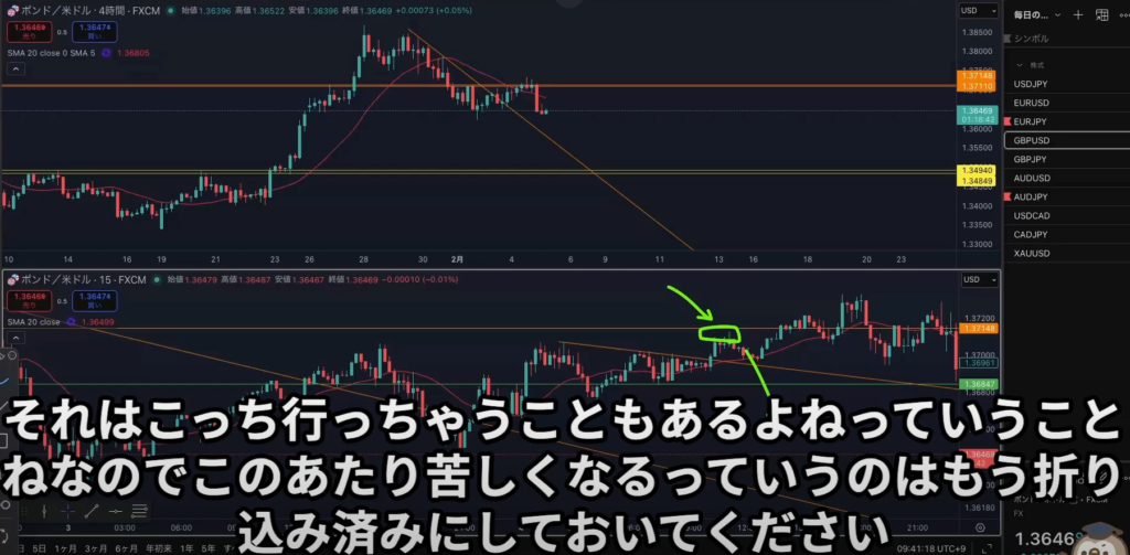 売り抑えてくる勢力がいるのでエントリー後はホールドして耐えないといけない、なぜ戻って来るかどういう勢力が居るかを理解出来ている事が重要で理解出来ていれば耐える所なども分かってくる気がする