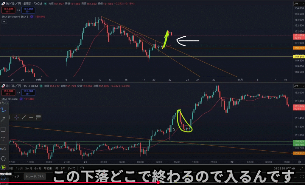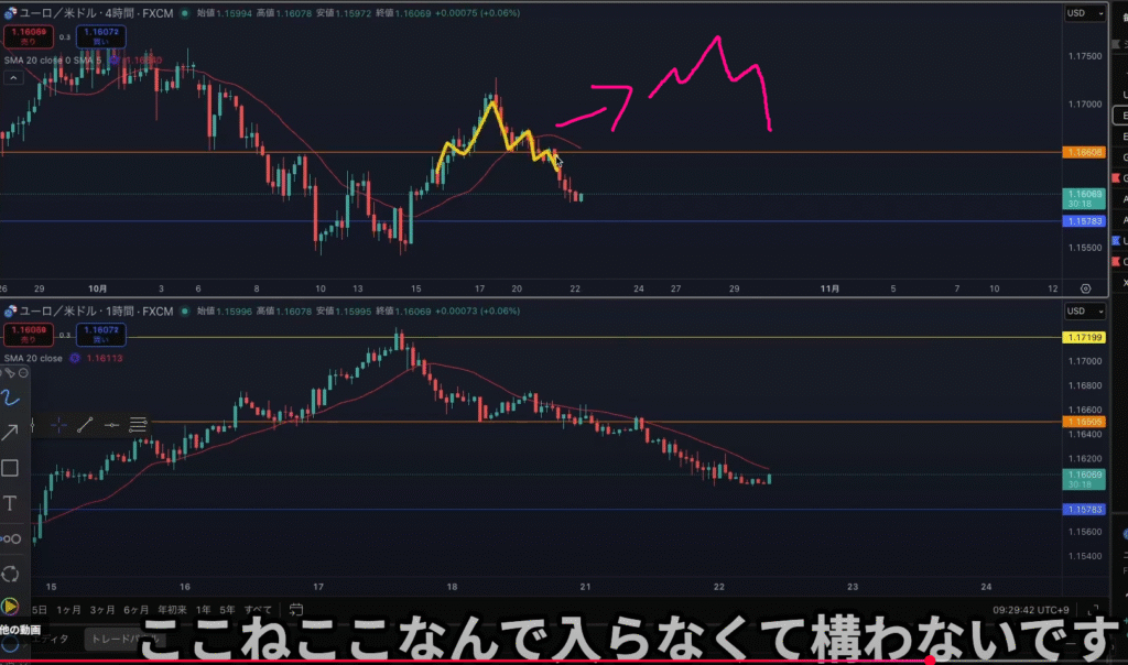 二番右肩の下降トレンドスタートのエントリーの際MAの位置と傾きは絶対に確認!!