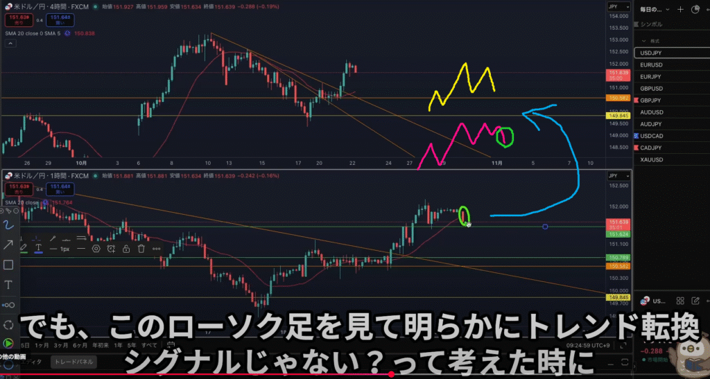 トレンド転換シグナルになりえるローソク足を見て、もしかすると違うダウカウントで戻り売り勢力がいて下目線の可能性も見えてくる!